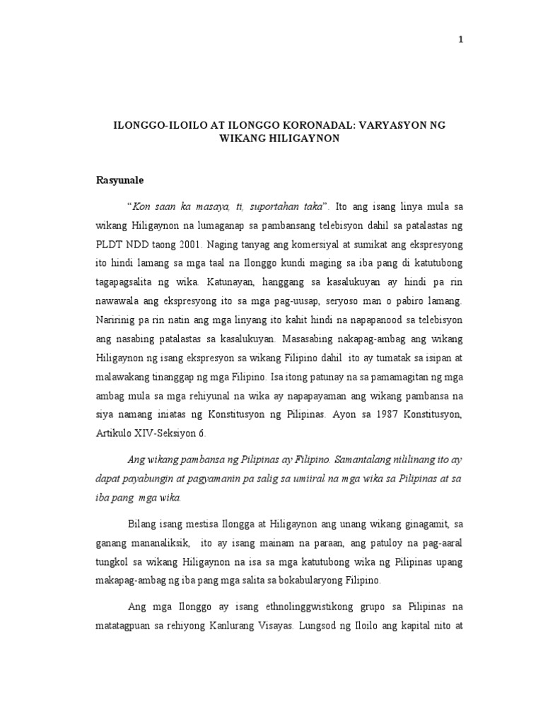 Varyasyon Ng Wikang Hiligaynon Fil 321 Konseptong Papel Pdf