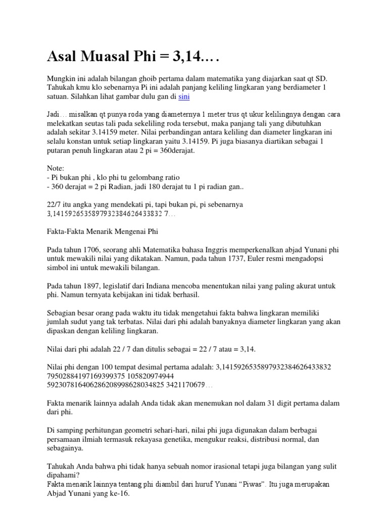 Asal mula phi. Asal Usul Pi Pi 314 Mungkin ini adalah bilangan ghoib pertama dalam matematika yang diajarkan saat qt SD. Kebanyakan kita mengenal pertama kali perbandingan trigonometri sin cos tan menggunakan segitiga siku-siku. Asal mula penganan papeda populer di tanah Papua ialah melalui warganya yang tinggal di daerah pesisir dan dataran rendah.