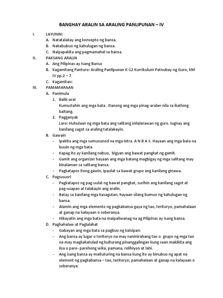 Banghay Aralin Sa Araling Panlipunan Docx2 Pdf